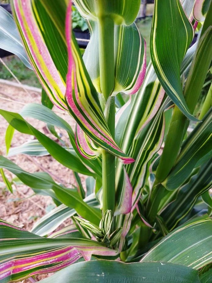 Zea Mays (corn) – “Japanese Striped Maze” is a unique vegetable, showcasing bright colors reminiscent of a festive celebration. First appearing in seed catalogs in the 1890s, it must have surprised gardeners. It’s a great companion for flowers or spring lettuce in your garden. Each leaf displays a mix of pinks, whites, yellows, and rosy swirls. By late June, the dwarf plants feature dark purple tassels and small burgundy ears of corn.